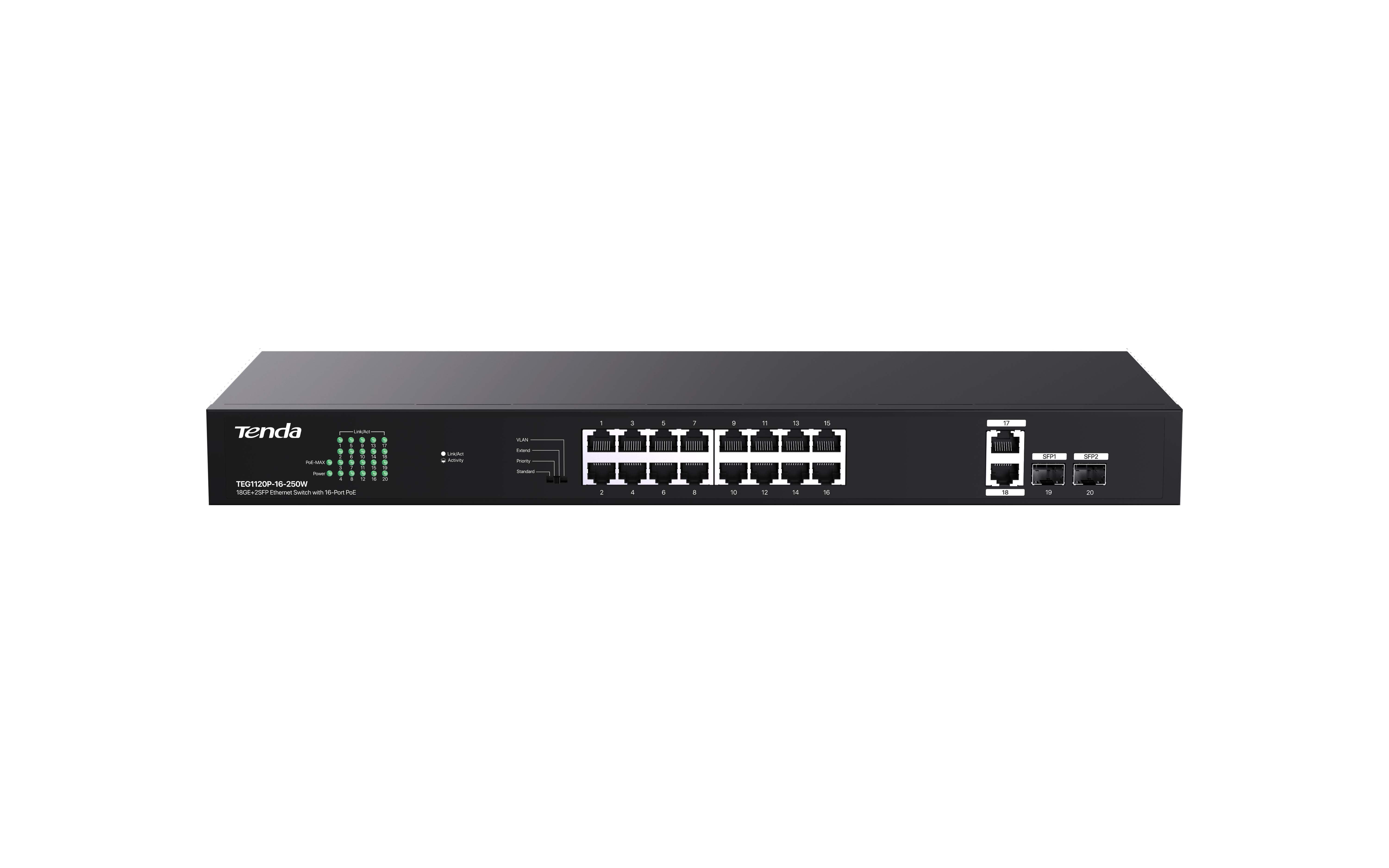 TENDA TEG1120P-16-250W 18GE+2SFP Ethernet Switch 16-Port PoE TEG1120P-16-250W (TEG1120P-16-250W)